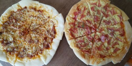 こんにちは、しゅふまるこです。 子供達が久しぶりにピザを食べたいというのでピザを焼きました。 左のピザはパスタソースの残りにチーズをのせたピザ。 右はトマトピューレにチーズ、ハムをのせました。 家にあったトマトピューレをピザソースにしたらとて…