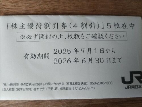 JR東日本の株主優待 昨日JR東日本の株主優待が届きました! 3月に900株保有していたので5枚も貰えちゃいましたよ JR東日本の株はトランプショックの時も下がらなかったので心の安定剤になってました。 でもさすがに900株も保有してるのは怖かったので500株売…